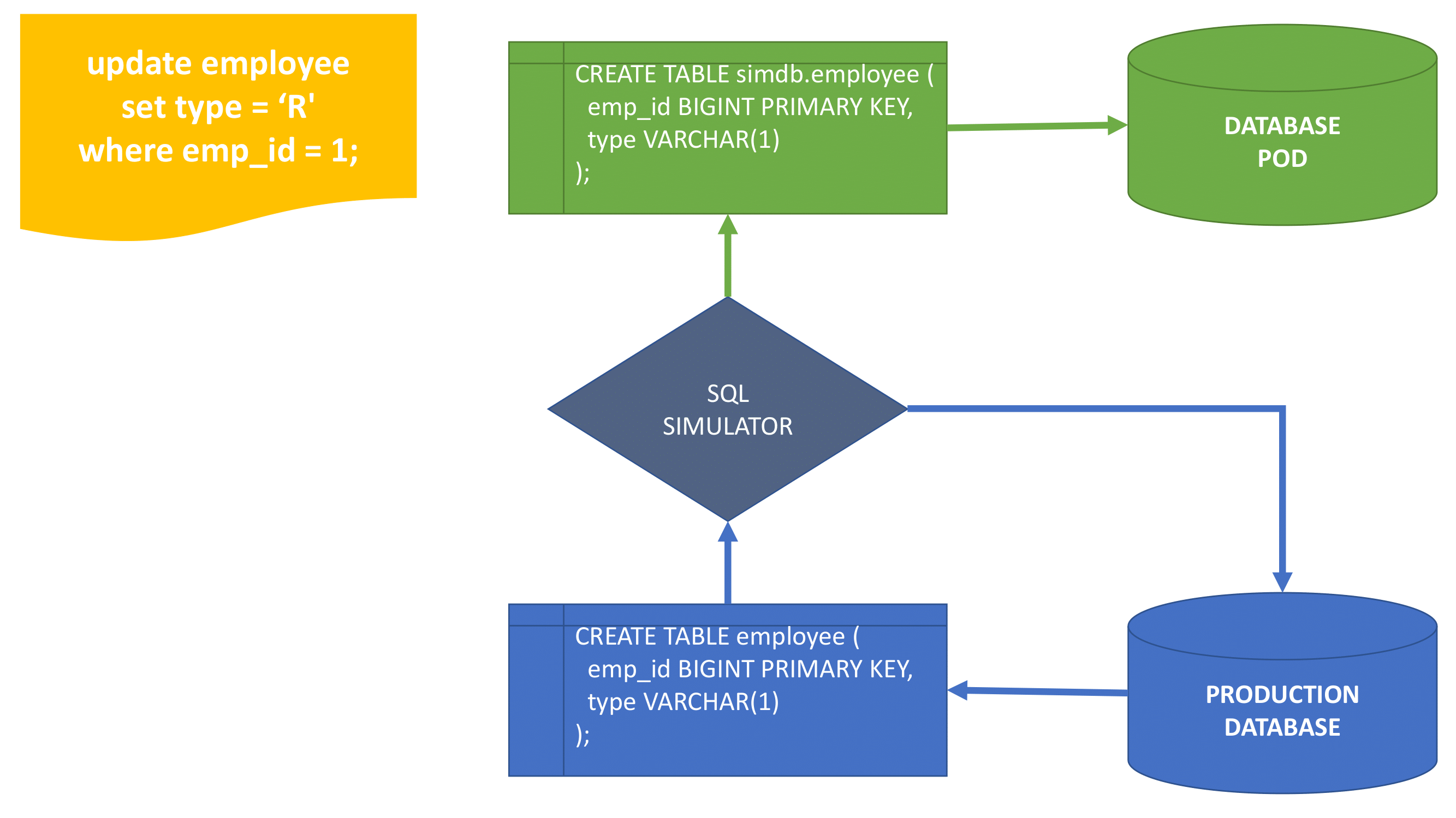 Please note that the schema name that is used in the pod database is "simdb".  This is done by using a "SQL Set Rewrite Parser" engine.